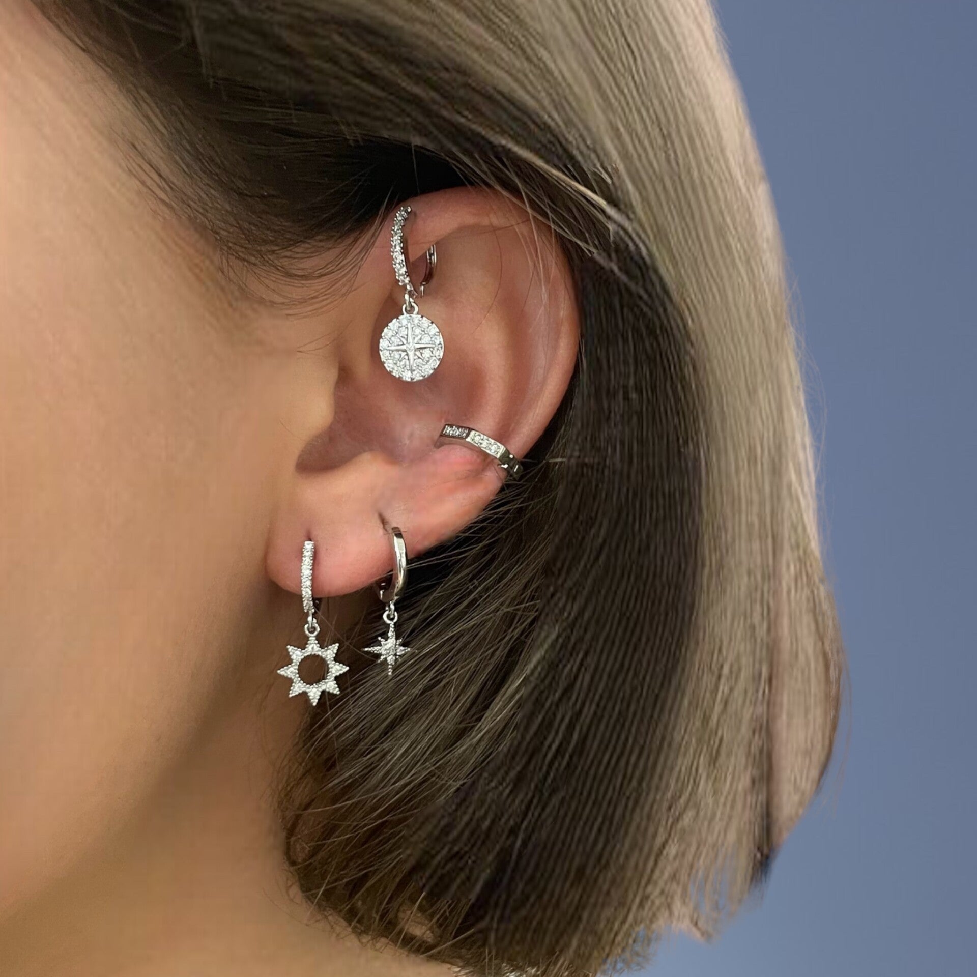 Vous êtes perdu ? vous ne savez plus quoi choisir ? retrouvez votre chemin avec la mono-boucle Boussola. Elle se compose d'une créole à strass et d'un pendentif rond avec les points cardinaux en relief et des strass.